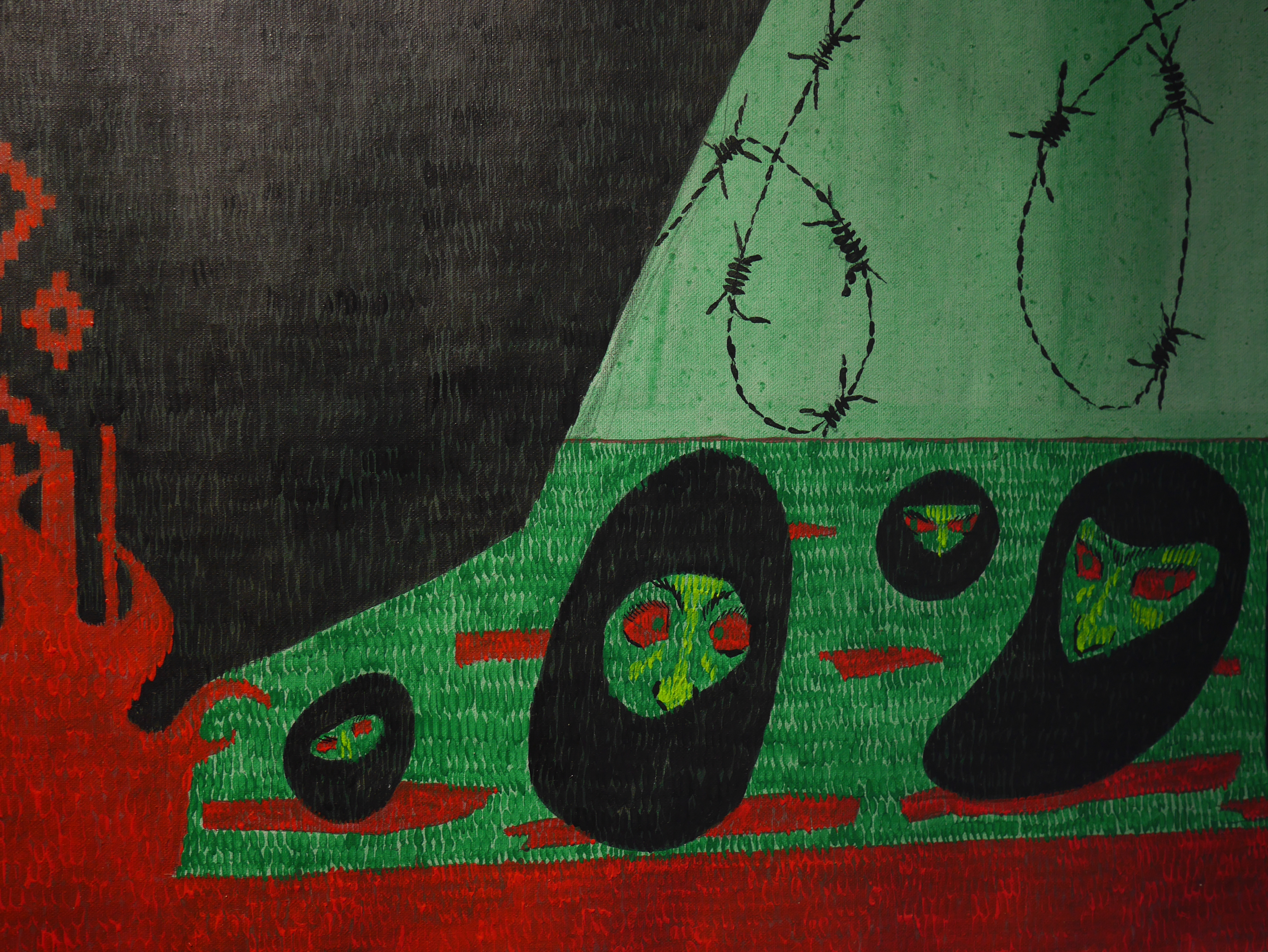 Out of nearly 50 submissions, seventeen finalists were selected. The exhibition features a diverse range of works – from traditional oil and acrylic paintings to experimental pieces, including those incorporating textile art. The themes vary widely, encompassing personal and feminist narratives, political issues, and abstract explorations of spirituality and complex physical processes.