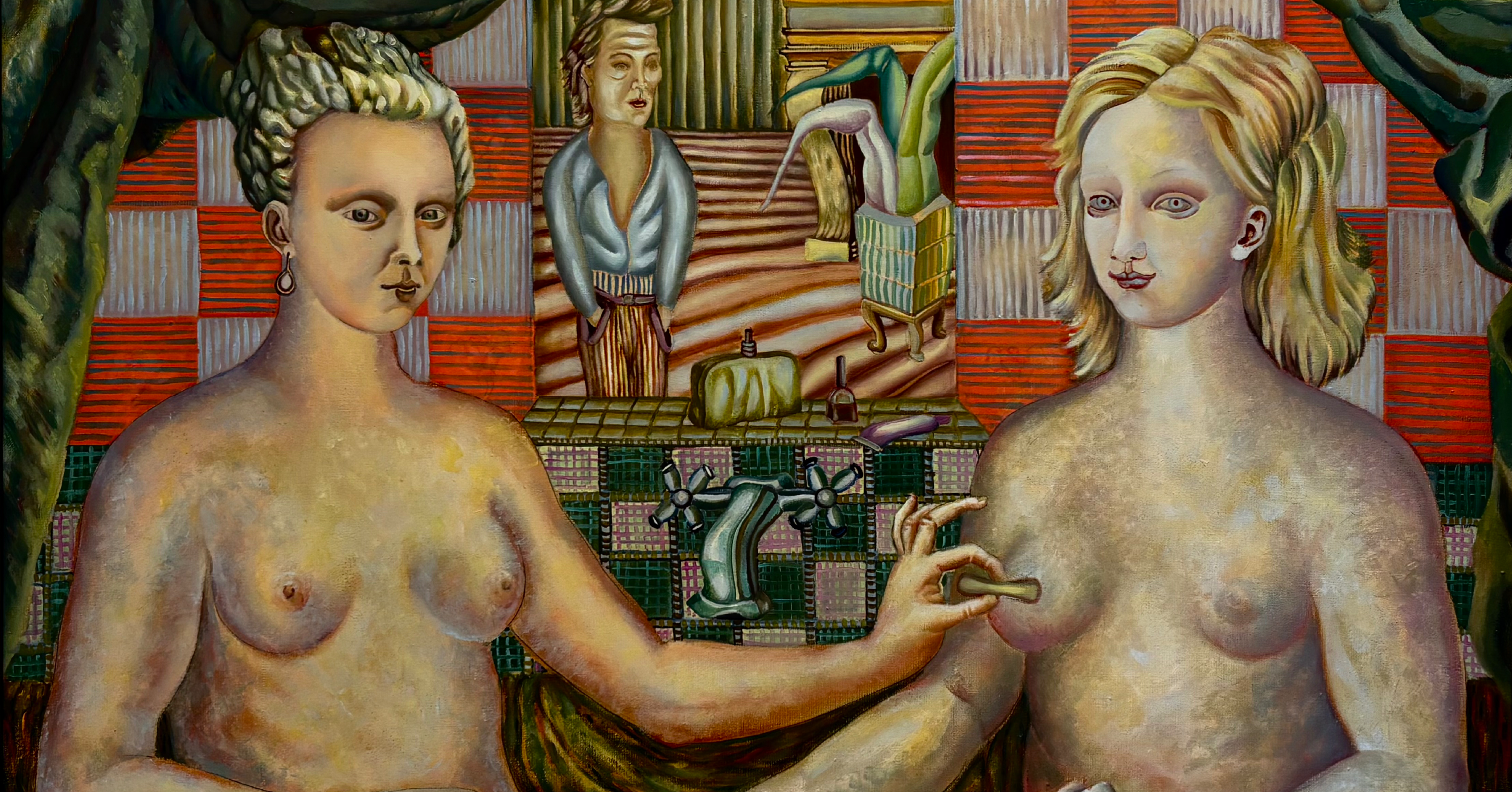 Our first glance falls on two paintings by Dorota Dąbrowska, a prematurely deceased Wrocław artist and student of Konrad Jarodzki -“Bath” (2006) and “Geographer in the Botanical Garden” (2004). These are representational works, yet they possess a completely distinct aesthetic and color palette - muted, dominated by greys and other subdued tones. One can clearly see the painter’s own world and her unique artistic vision - exceptionally skilled and individual in her search to create her own reality. This becomes the center and, in a sense, the keystone of this edition of the painting meetings at Plac Solny.